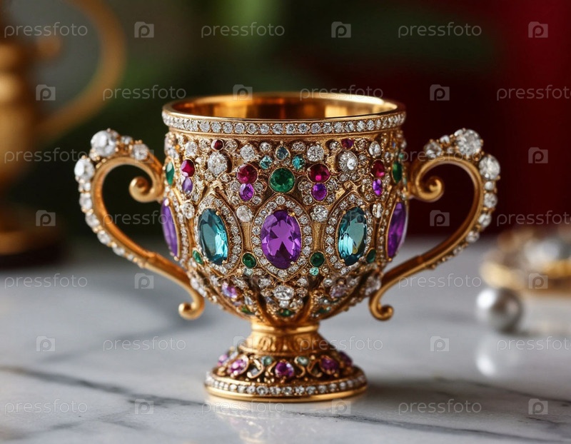 Золотая чашка с камнями. ИИ
