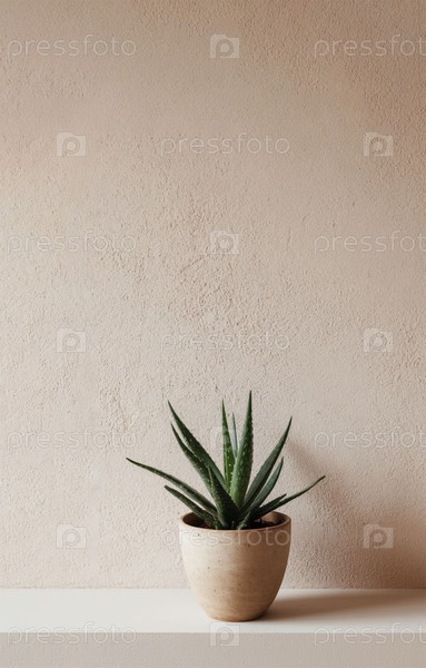 Минималистичная фоновая вертикаль с растением на фоне горшка, обои. ИИ