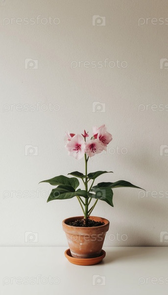 Минималистичная фоновая вертикаль с растением в горшке, копировальное пространство, фон, обои. ИИ