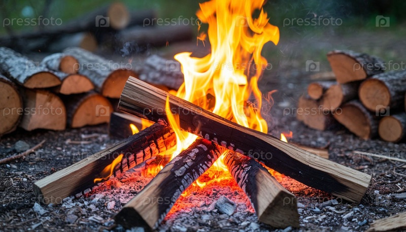 Лог горит в огне во дворе