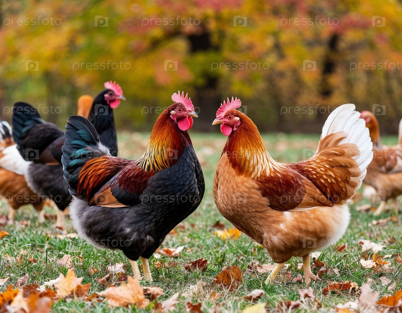 Куры на лужайке летом