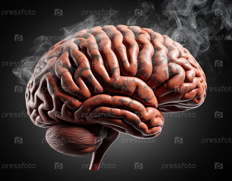 Мозг курящего человека покрыт пылью и дымом