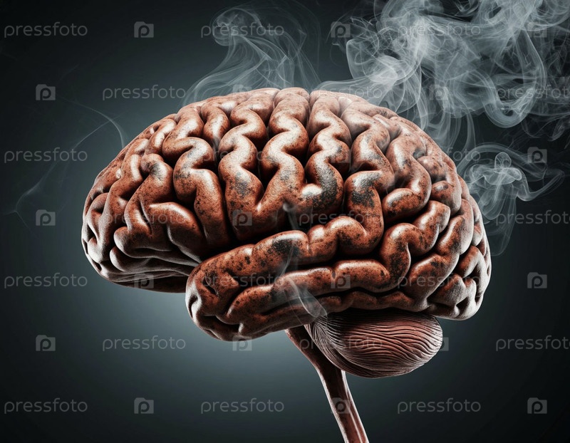 Мозг курящего человека покрыт пылью и дымом