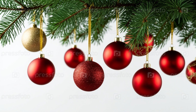 Красные рождественские шары на белом фоне