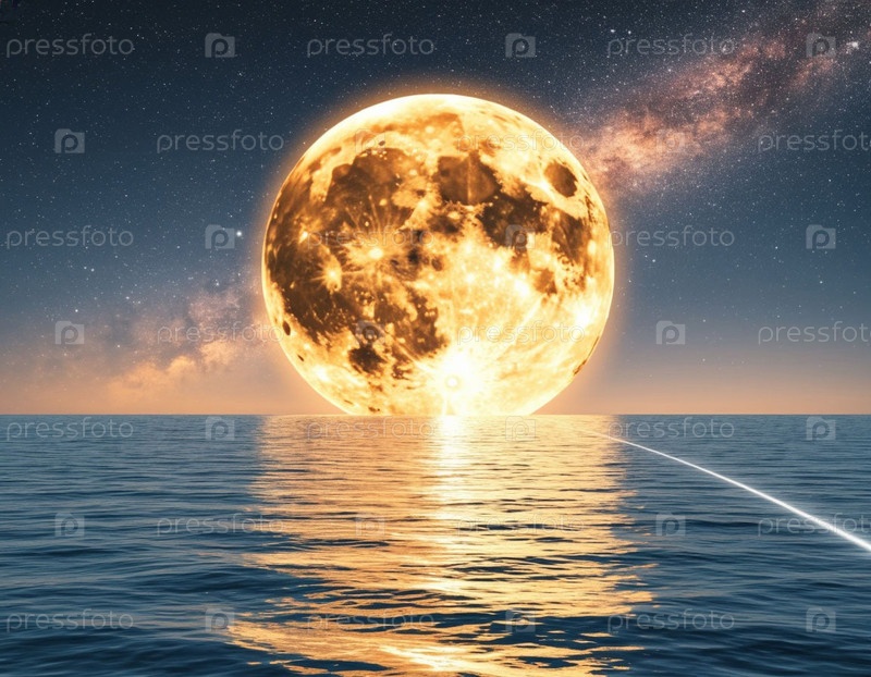 Огромная луна над морем и тропа света