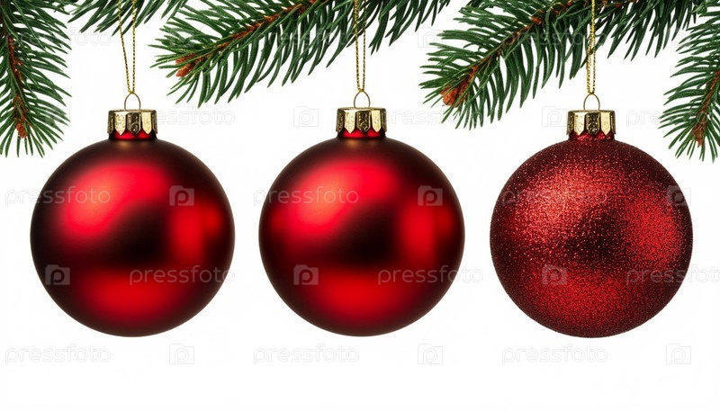 Три рождественских мяча на белом фоне