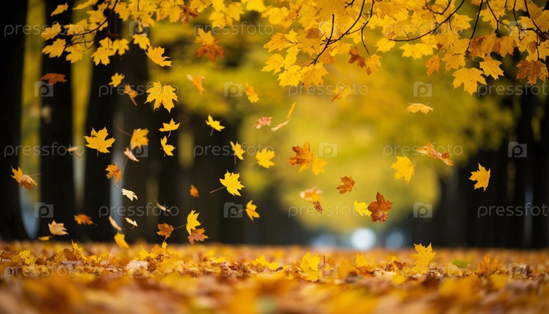 Осенние листья падают в парке. Сгенерированный ИИ