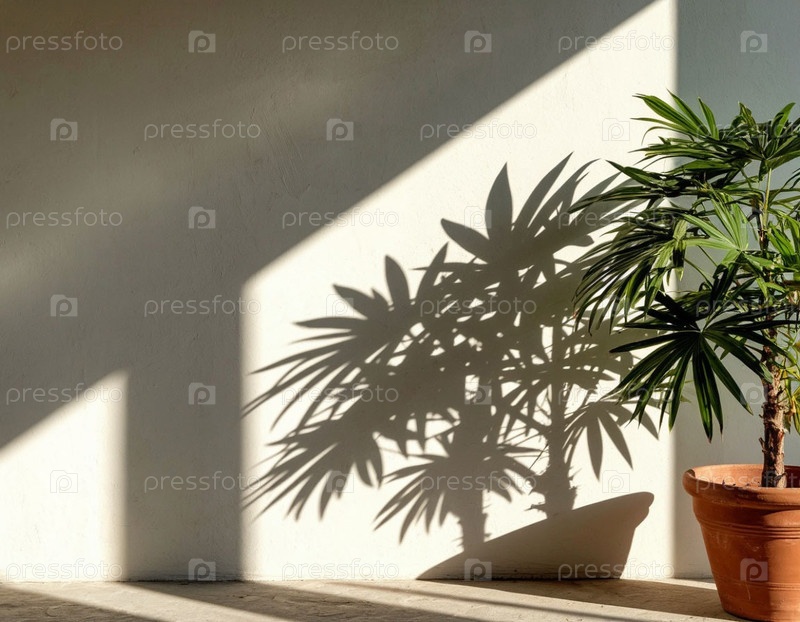 Солнечный свет и тень на стене в стиле минималистского дизайна. Сгенерированный ИИ