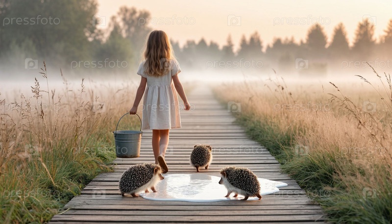 Ежи пьют молоко в исполнении девушки. Нежные сюрреалистические виды