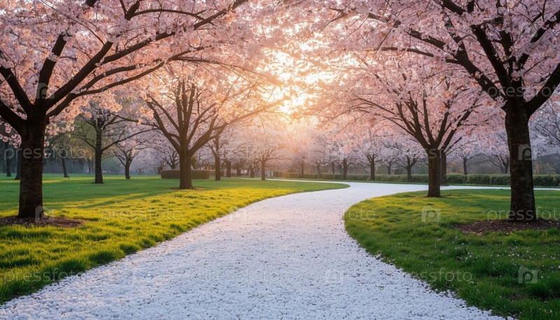 Вишня цветет в парке рано утром