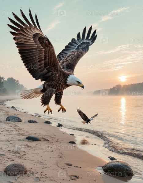 Орел учит своего орла летать на рассвете