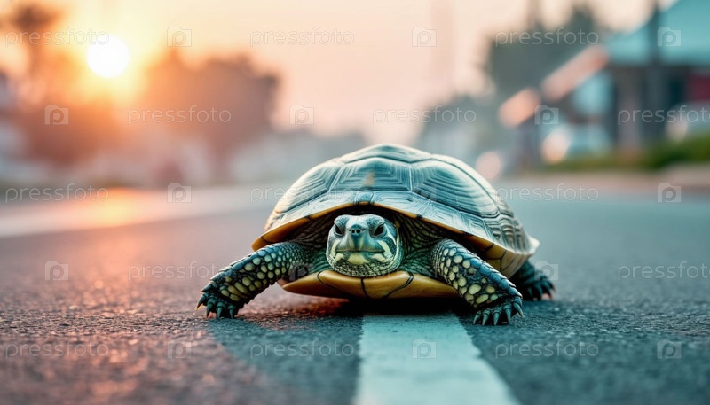 Черепаха ползает по шоссе с риском