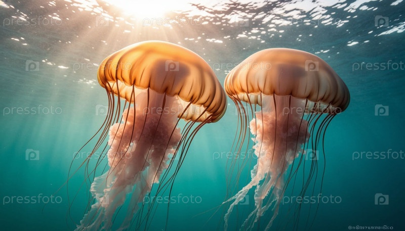 Морская медуза под водой на рассвете