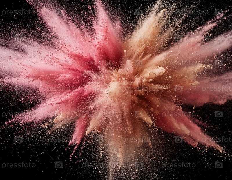 Взрыв порошка на изолированном черном фоне. Сгенерированный ИИ