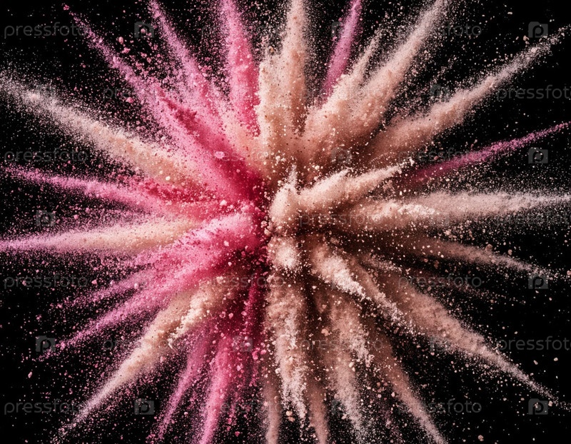 Взрыв порошка на изолированном черном фоне. Сгенерированный ИИ