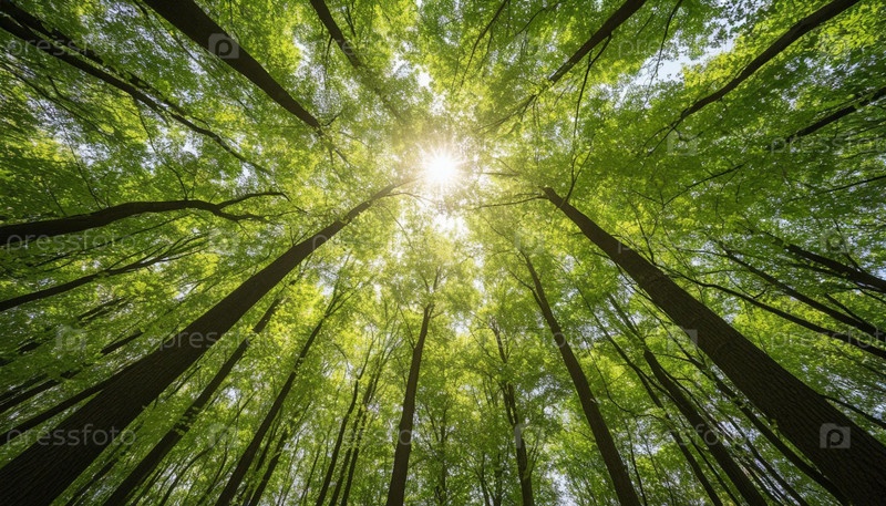 Солнечный свет падает сквозь полог дерева