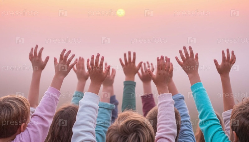Детские руки протягиваются из молочного тумана к утреннему солнцу