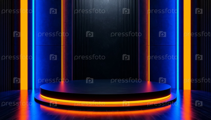 Презентация продукта подиум на роскошном темном фоне с неоновым освещением
