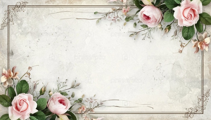 Винтажная свадебная рамка с цветочными границами и текстом поздравления