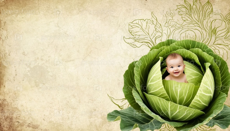 Новорожденный в капустном листе – макет детской карточки. Генерируется ИИ