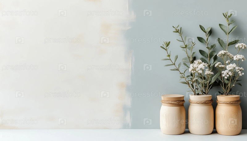 Эко-дружественные березовые ярлыки с дикими травами против синей винтажной стены