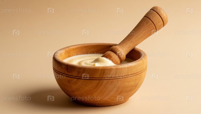 Белый соус в деревянной чаше с Pestle AI