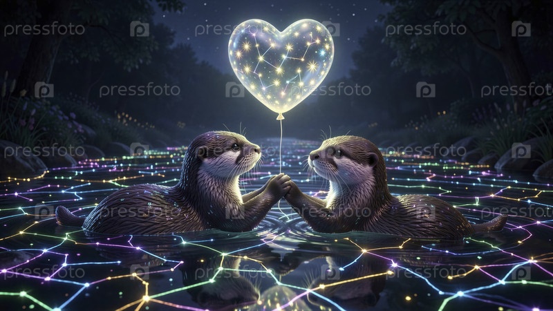 Очаровательные выдры с воздушным шаром в форме сердца