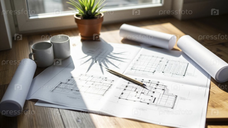 Архитектурный проект на деревянном столе