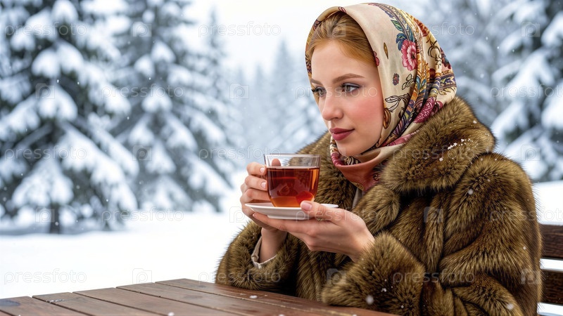 Женщина, наслаждающаяся теплым чаем в снежный день