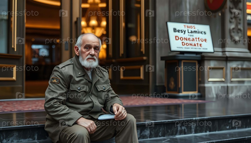 Старый бедный ветеран армии в роскошном казино