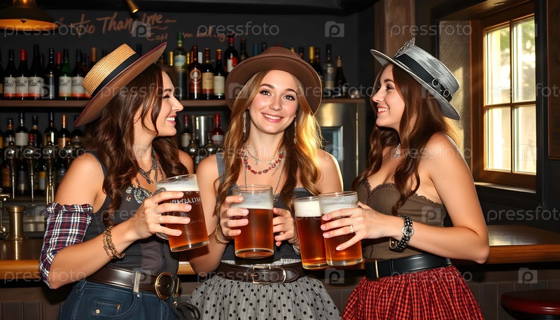 Молодые женщины с пивом в баре страны