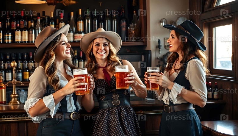Молодые женщины с пивом в баре страны