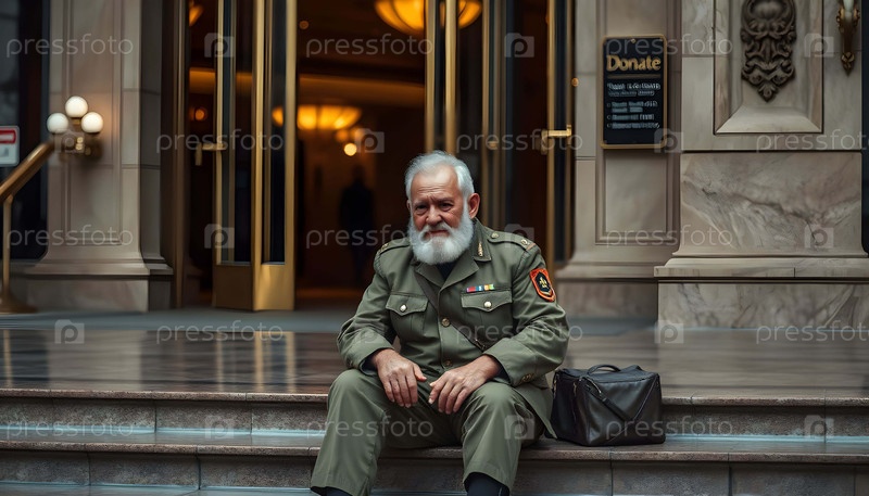 Старый бедный ветеран армии в роскошном казино