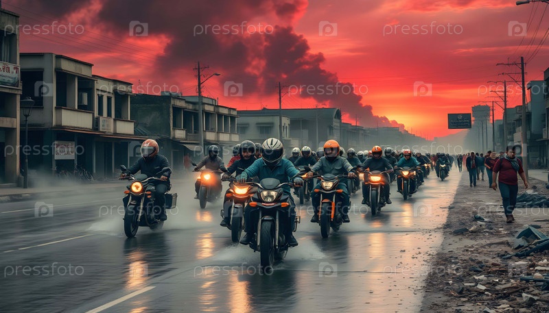 Толпа байкеров в Апокалиптическом городе