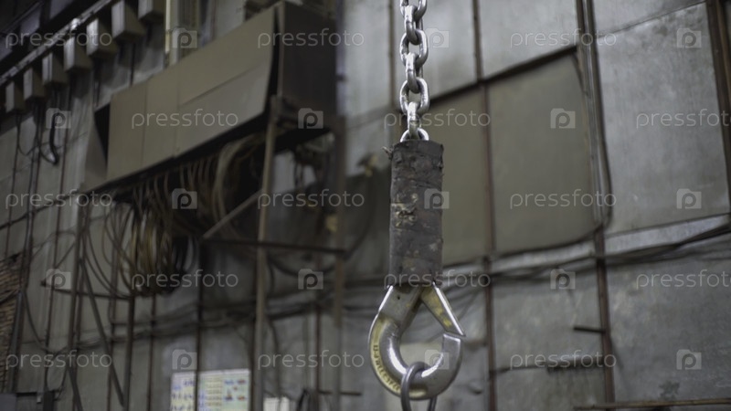 Завод по производству крючков. КЛИП. На металлическом крючке. На заднем плане стена обшита листами железа