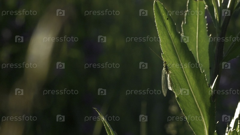 Кузнечик с длинными усами сидит на тонкой зеленой траве. Творческий. Макро-фотография, где маленький кузнец сидит в траве и идет дождь, а затем заканчивается. Качественные 4k кадры