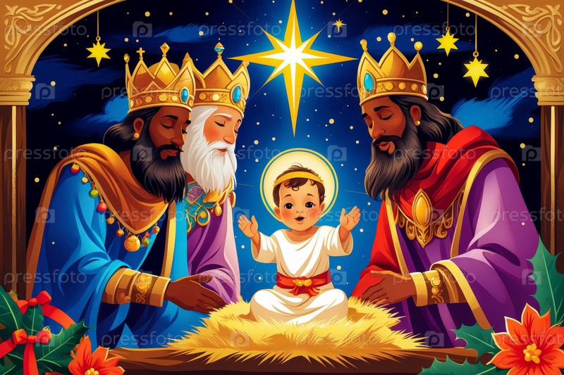 Христианский праздник Три дня царей в честь поклонения младенцу Иисусу, мудрецы принесли подарок