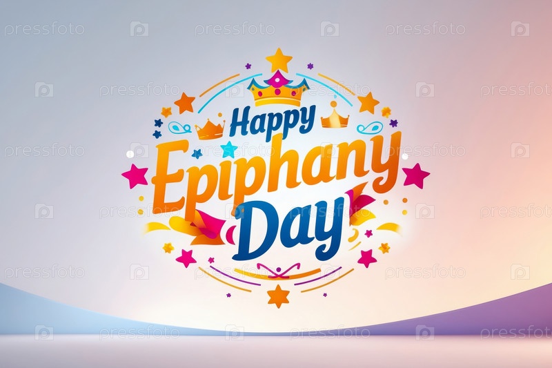 AI Generative Greeting Card Христианский праздник Богоявление, надпись на цветном фоне