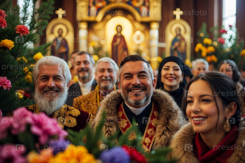 Мужчины и женщины в Православной Церкви празднуют Рождество Христово 7 января