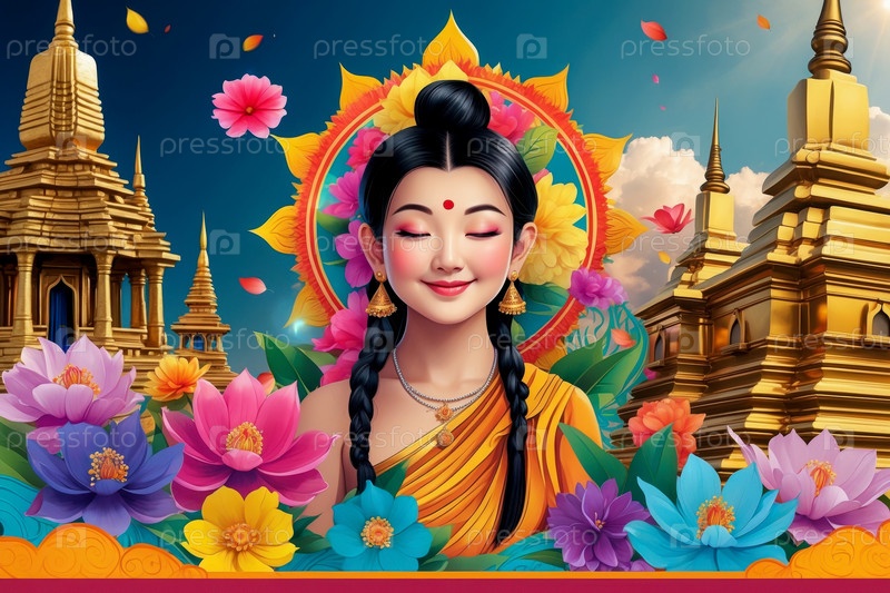Люди на азиатском буддийском празднике Махаяна Новый год, мужчины и женщины в традиционных костюмах