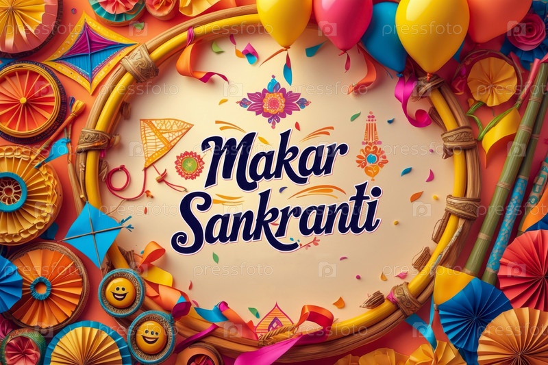 Индия и Непал Makar Sankranti Greeting Card Прекрасный телефонный фестиваль AI Generative