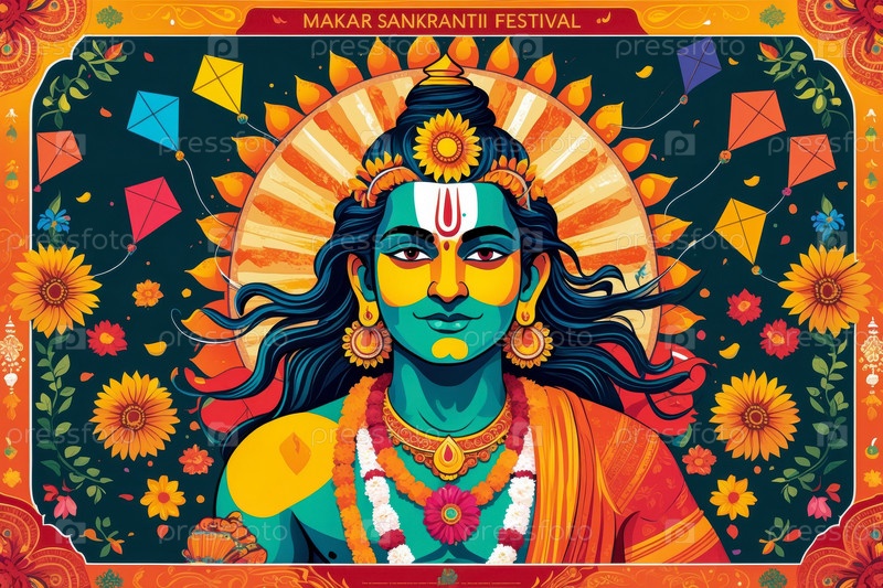 Индия и Непал Makar Sankranti Greeting Card Прекрасный телефонный фестиваль AI Generative