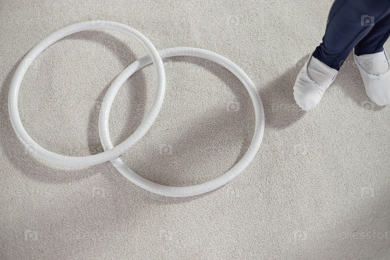 Ребенок, стоящий рядом с гимнастическими крючками в помещении