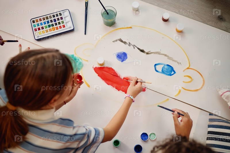 Дети Альфа-поколения рисуют иллюстрацию большого лица