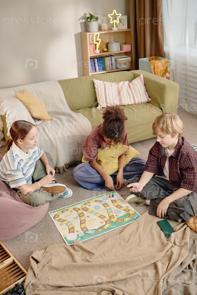 Многоэтническое поколение Альфа Дети играют в настольную игру