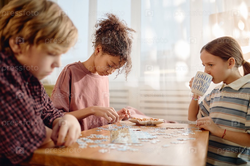 Альфа-дети разных поколений собирают головоломки