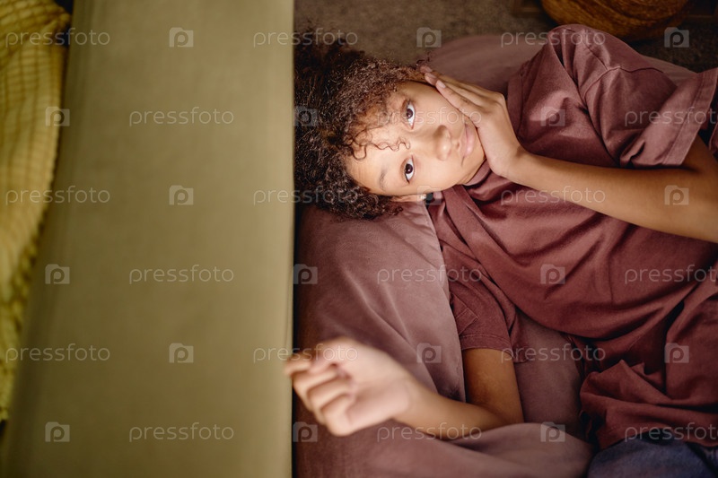 Портрет молодой многонациональной девушки, отдыхающей в помещении