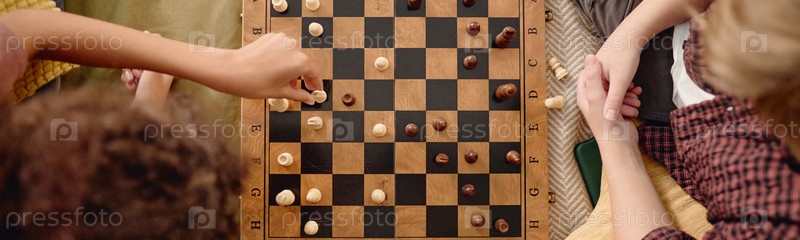 Дети Альфа-поколения играют в шахматы вместе