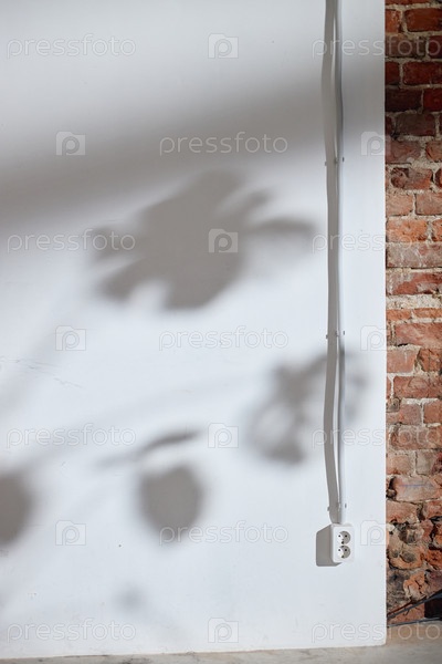 Тень листьев растений, падающих на стену с показанием электрической розетки