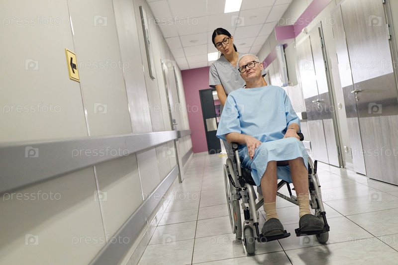 Мужчина с инвалидностью получает помощь от медсестры-молодого взрослого в больнице